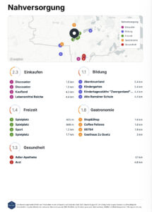 Die Anbindung an das regionale Verkehrsnetz ist ausgezeichnet, sodass wichtige Städte und Gemeinden der Region bequem erreichbar sind. In der näheren Umgebung befinden sich diverse Einkaufsmöglichkeiten, Schulen und Freizeiteinrichtungen, die den täglichen Bedarf decken und zur Lebensqualität beitragen.