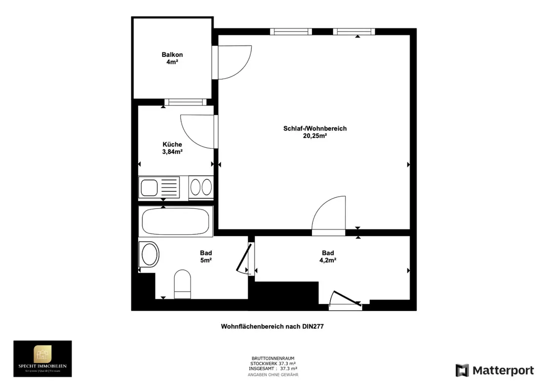 - Fläche: 37 Quadratfuß