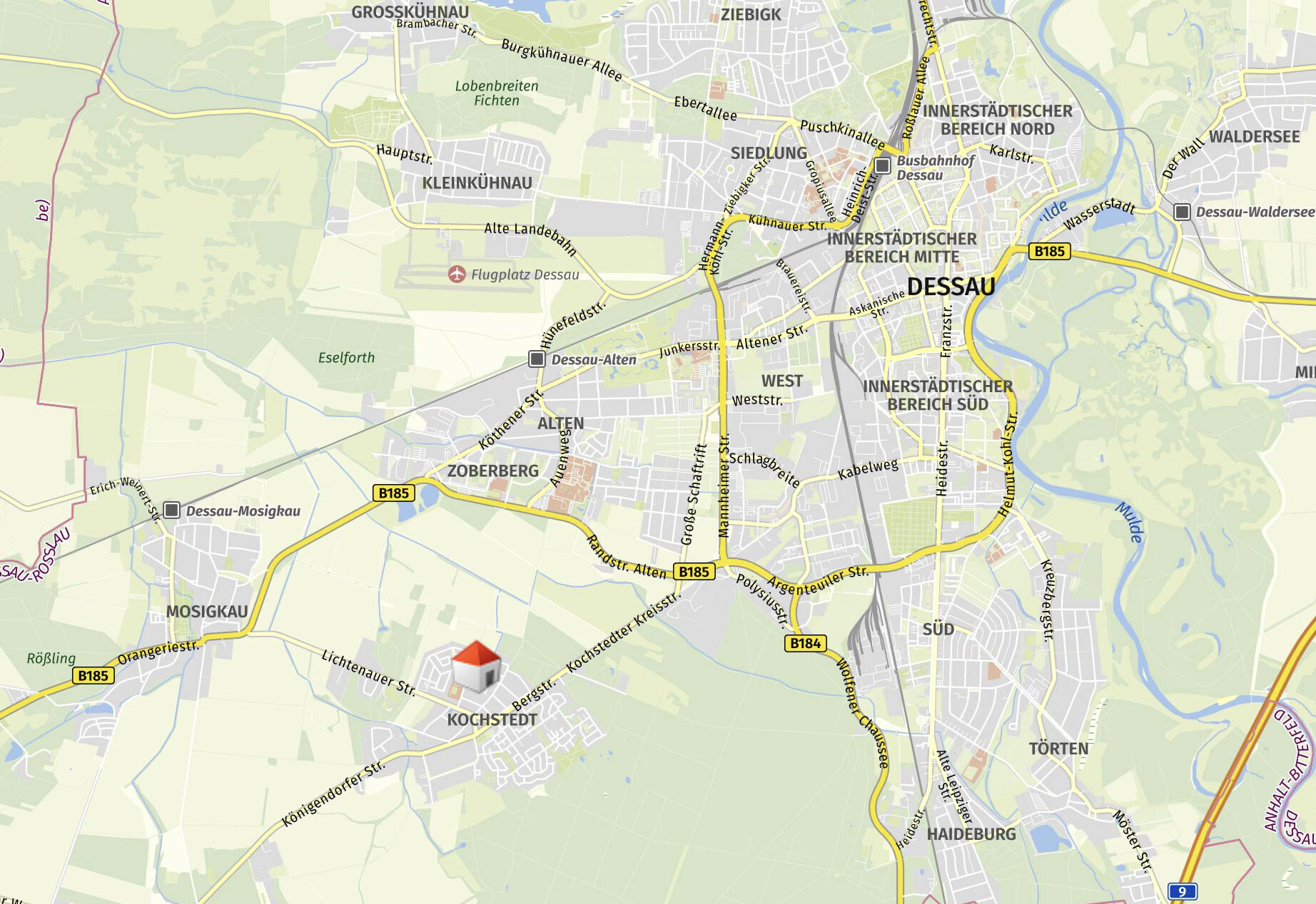 ist günstig, sodass sowohl das Stadtzentrum von Dessau-Roßlau als auch überregionale Ziele bequem erreichbar sind.